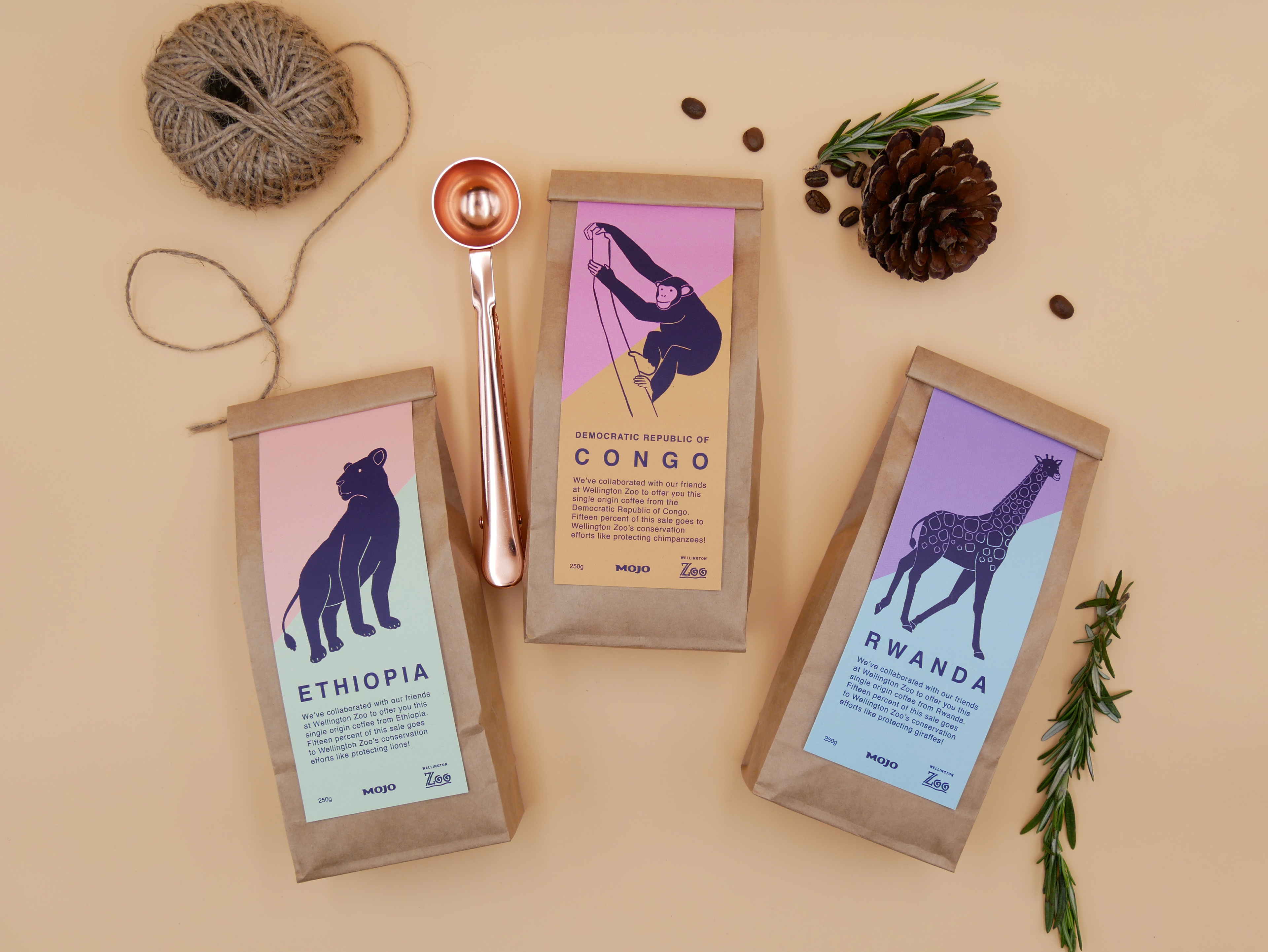 Illustration and design for Mojo Coffee x Wellington Zoo's single origin collaboration.